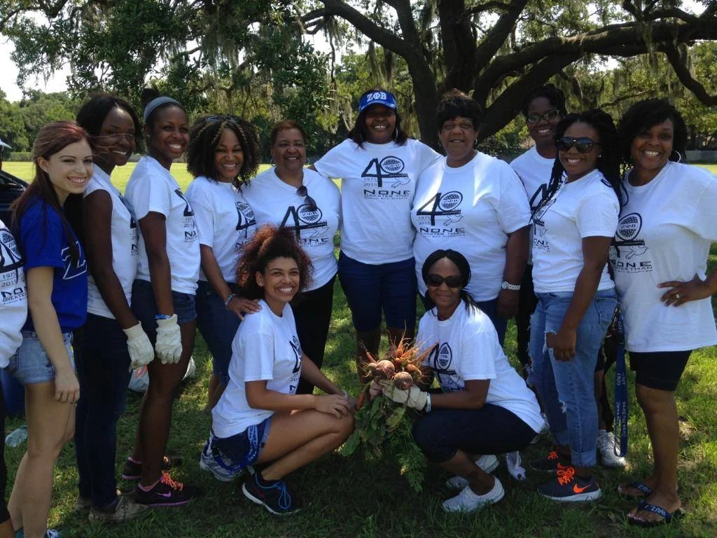 Fabulous Sorority sisters painting the rails at Greco Middle School.